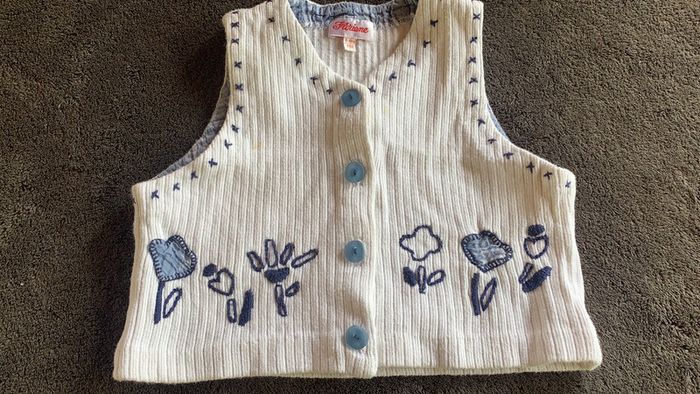 gilet blanc sans manches fermeture à boutons marque Floriane taille quatre ans une légère petite tache (voir photo) bon état #ggilloisrenon_fille_4ans code rangement 163
