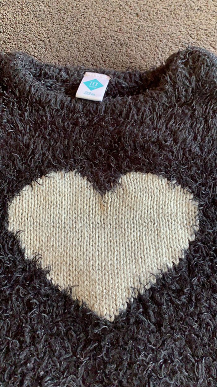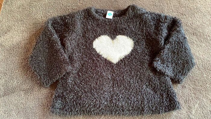 pull tout doux noir avec cœur blanc paillettes marque tex taille 24 mois (marqué 23) très bon état 2 boutons au col pour faciliter l’enfilage. #ggilloisrenon_fille_24mois code rangement 154