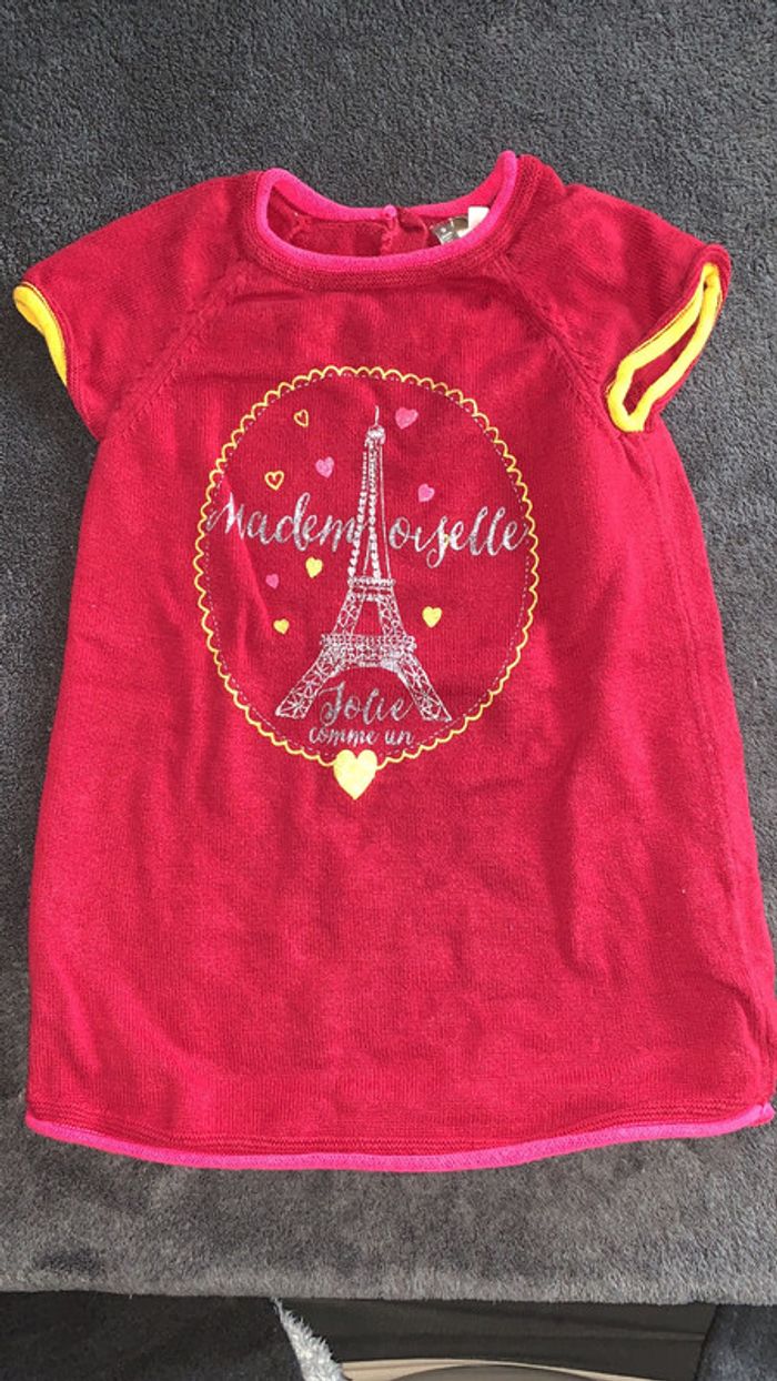 robe manches courtes en rouge avec motifs brillant tour Eiffel marque orchestra taille neuf mois très bon état. #ggilloisrenon_fille_9mois code rangement 77