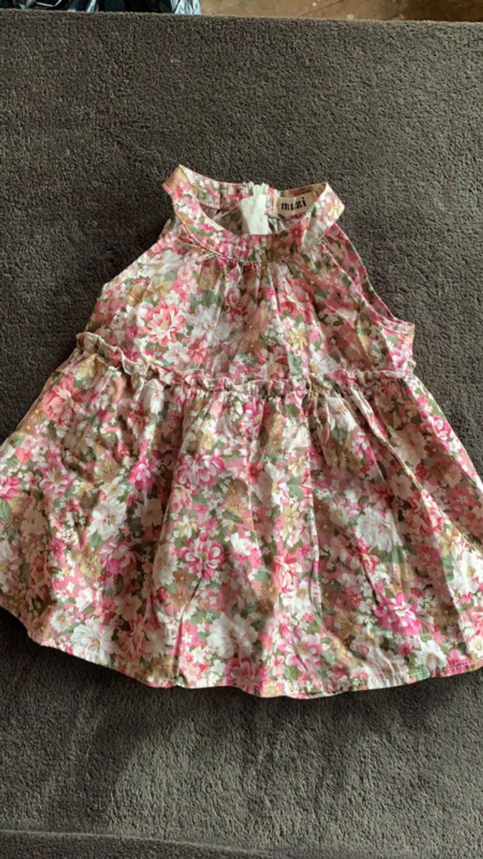 robe sans manches à fleurs marque muzi fermeture à l’arrière avec fermeture éclair ne comporte pas d’étiquette de taille mais taille six mois très bon état. #ggilloisrenon_fille_6mois code rangement 72