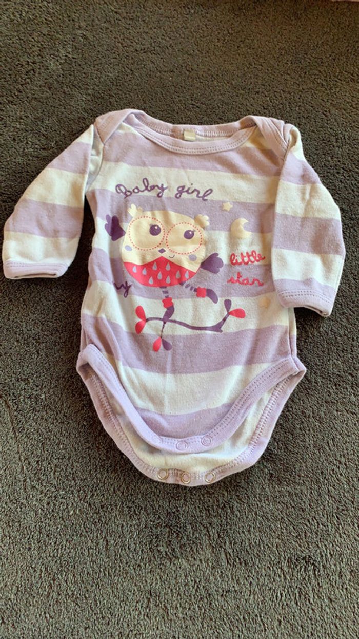 petit body manches longues violet et rose avec un petit hibou porter une fois avec un petit accident sur le derrière (voir photo) devant aucun problème. taille trois mois 62 cm pas de marque apparente mais acheté chez orchestra #ggilloisrenon_fille_3mois code rangement 23