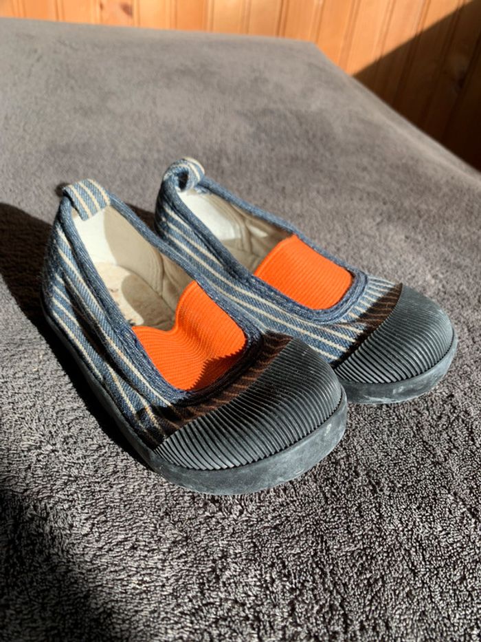 petites chaussures style ballerines garçon élastique très facile à enfiler un peu porté mais très bon état taille 23 Achat et prix groupé possible. Tous les vêtements sont lavés et repasser avant envoi. #ggilloisrenon_pieds G