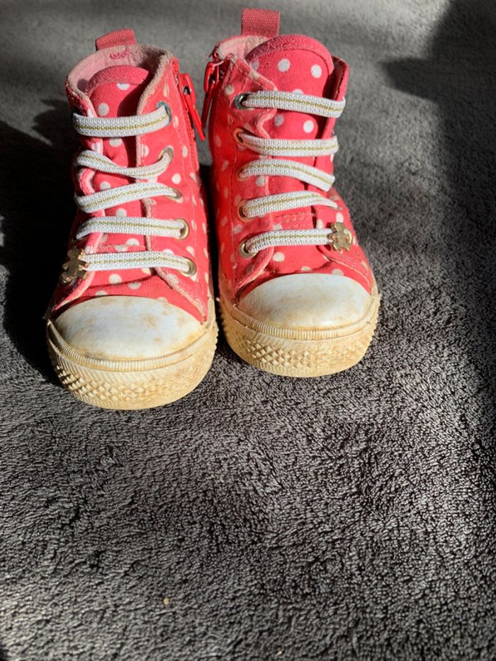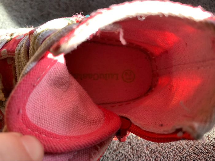 basket Lulu castagnette rose à point blanc avec petit ours sur l’extérieur lacets élastiques plus fermeture à l’intérieur, facile à mettre. Ayant déjà été porté signe de cela, mais tout à fait utilisable. taille 21 #ggilloisrenon_pieds Achat et prix groupé possible. Tous les vêtements sont lavés et repasser avant envoi. G