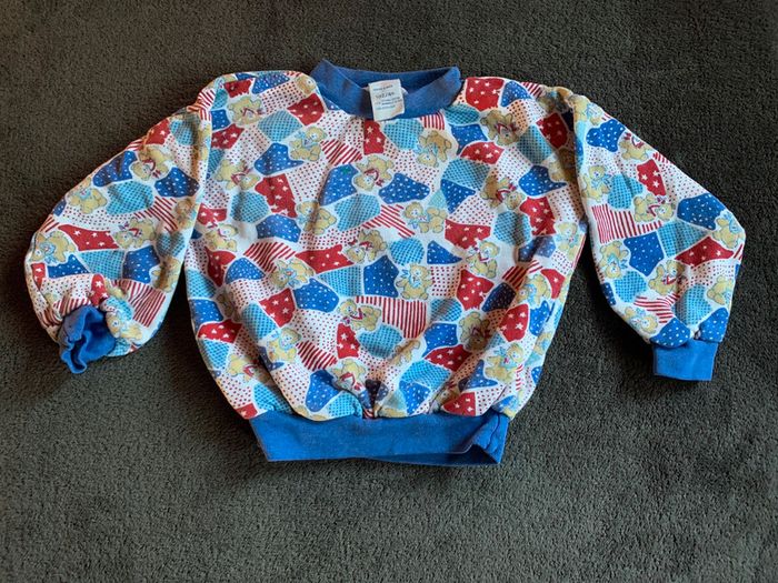 Pull motifs nounours taille quatre ans 102 cm composition 50 % coton 50 % acrylique fabriqué au Maroc intérieur polaire très bon état aucune tache. Achat et prix groupé possible. Tous les vêtements sont lavés et repasser avant envoi. #ggilloisrenon_garçon_4ans G