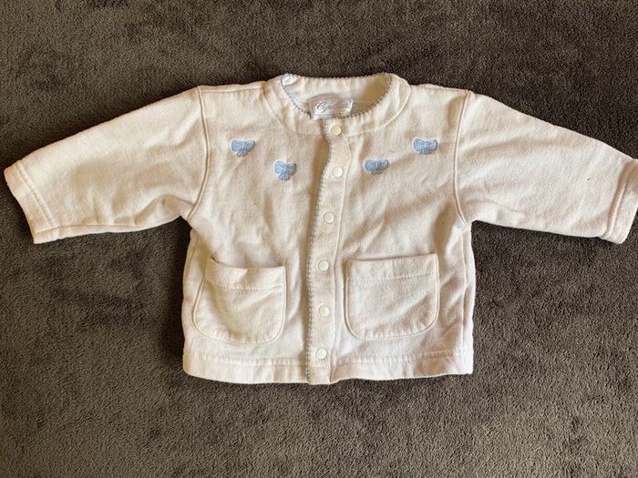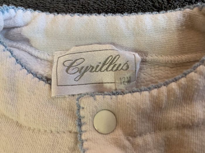 gilet Cyrillus taille un an blanc avec dessin de nœud bleu fermeture à pression bon état général Achat et prix groupé possible. Tous les vêtements sont lavés et repasser avant envoi. #ggilloisrenon_fille_18mois G