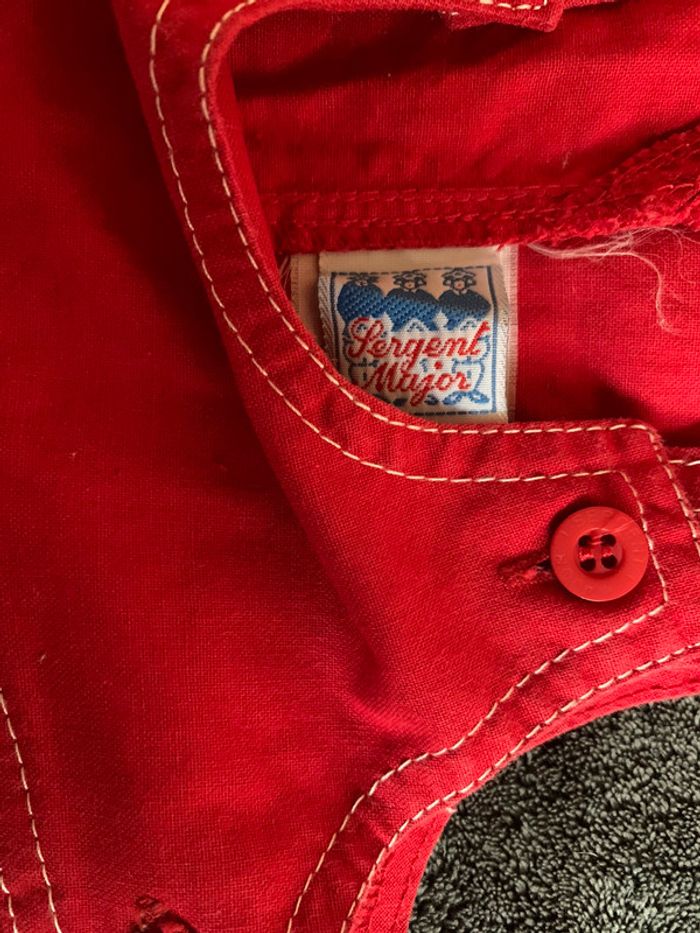 salopette rouge surpiqûres blanches marque sergent Major 100 % coton taille six mois état comme neuf. Achat et prix groupé possible. Tous les vêtements sont lavés et repasser avant envoi. #ggilloisrenon_fille_6mois #ggilloisrenon_garçon_6mois #ggilloisrenon_mixte_6mois G