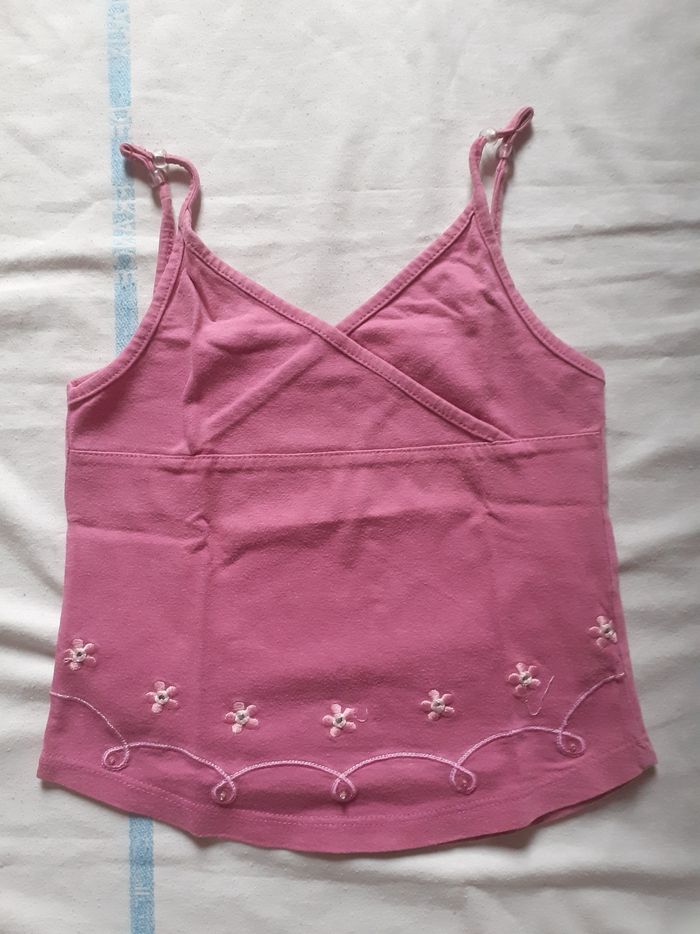 Débardeur rose à petites bretelles avec broderies au bas du tee shirt 3 ans