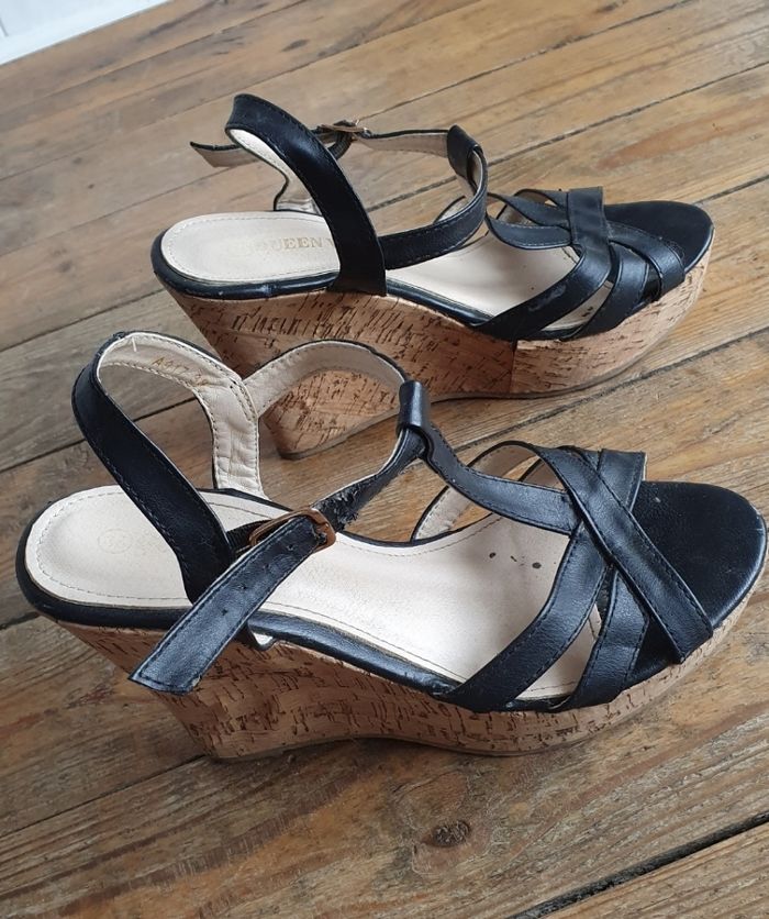 Chaussures de plage ou vacances à talons, espadrilles noires Queen Vivi 38 - photo numéro 1