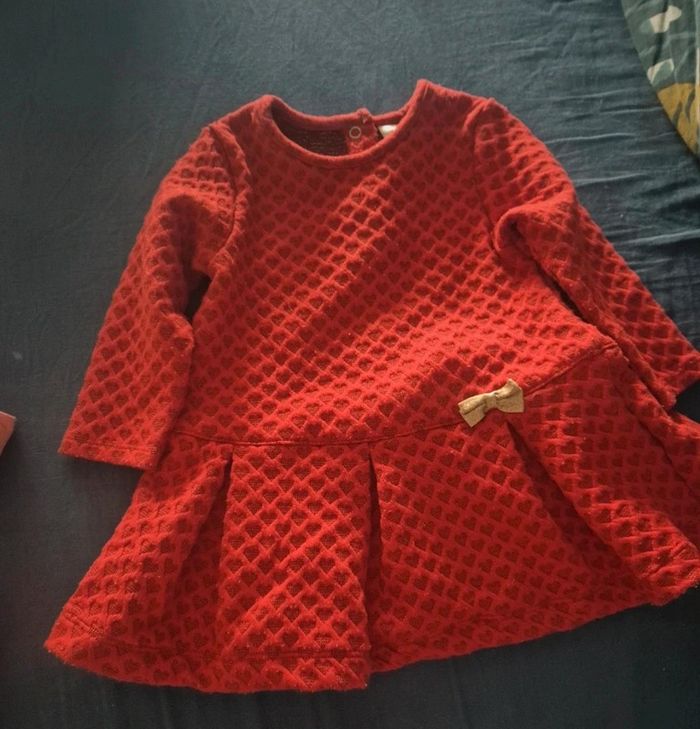Robe rouge hiver avec petit nœud doré 9 mois 71 cm Quelques fois porté pour les fêtes de fin d'année #ayabanzairobebebefille #ayabanzai9mois #ayabanzaibebefille #9mois #bebefille