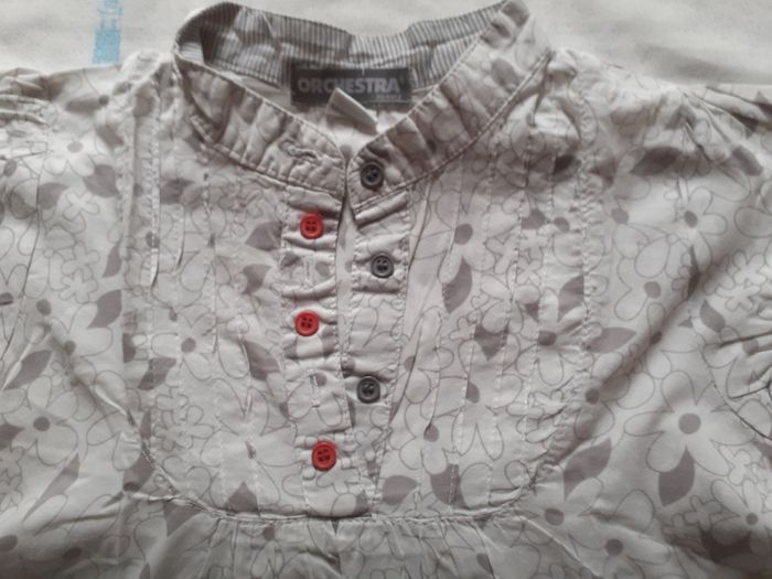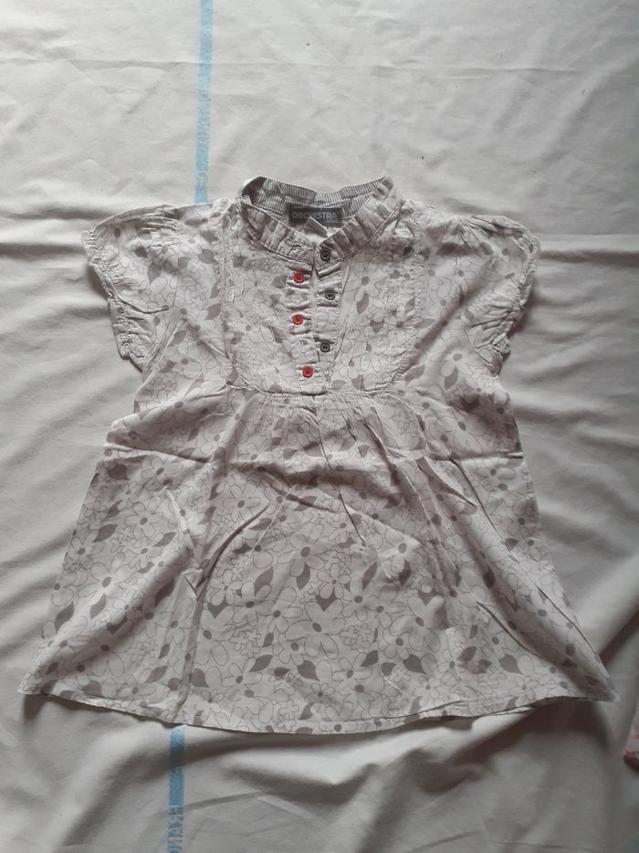 Chemise à manches courtes blanches motif petites fleurs grises et blanches 3 ans
