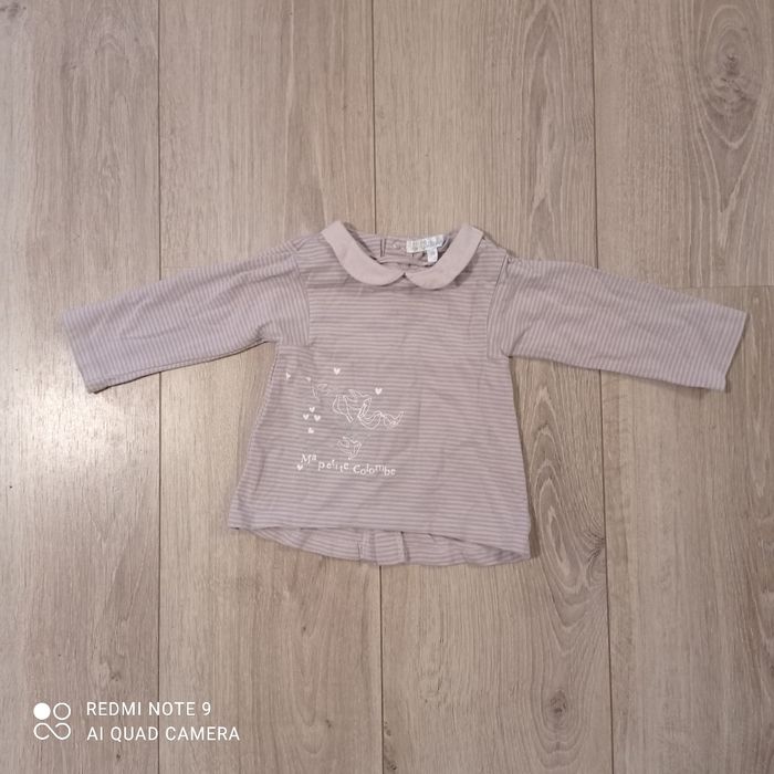 T-shirt beige à rayures 9mois - photo numéro 2