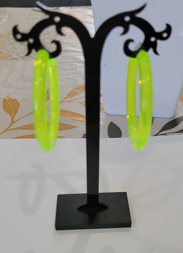 BOUCLES D'OREILLES ANNEAUX CREOLES JAUNE FLUO SOIREE ANNEE 80 ! NEUF - photo numéro 4