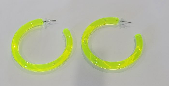 BOUCLES D'OREILLES ANNEAUX CREOLES JAUNE FLUO SOIREE ANNEE 80 ! NEUF - photo numéro 1