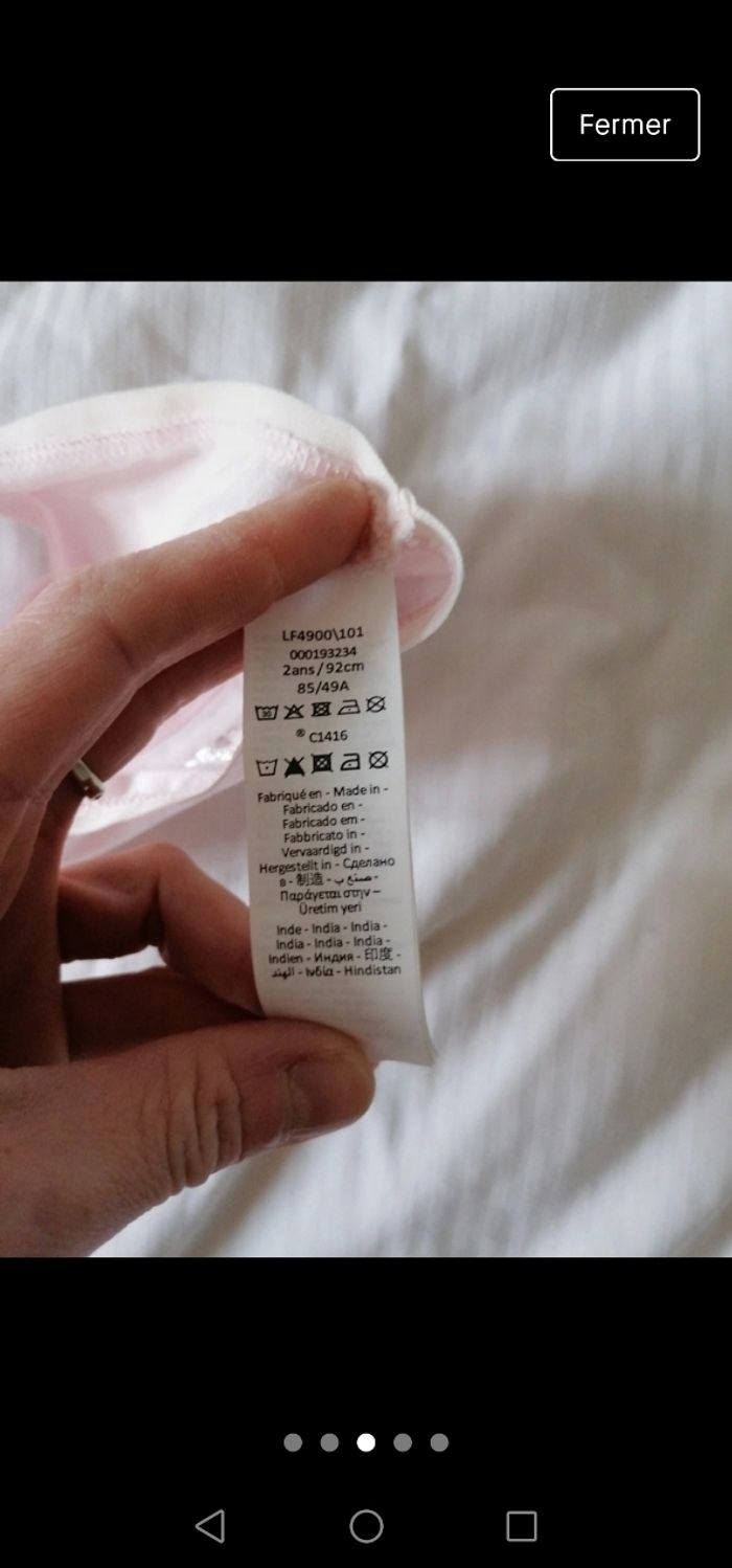 Lot de 2 brassières 1rose 1 blanche Neuve jamais porté Taille 2 ans
