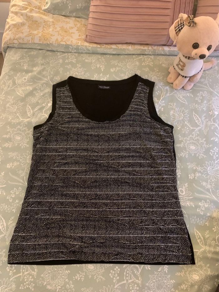 Teeshirt froufrou noir pois blanc taille 42 Description et mesures en photos Réduction active pour les achats en lot