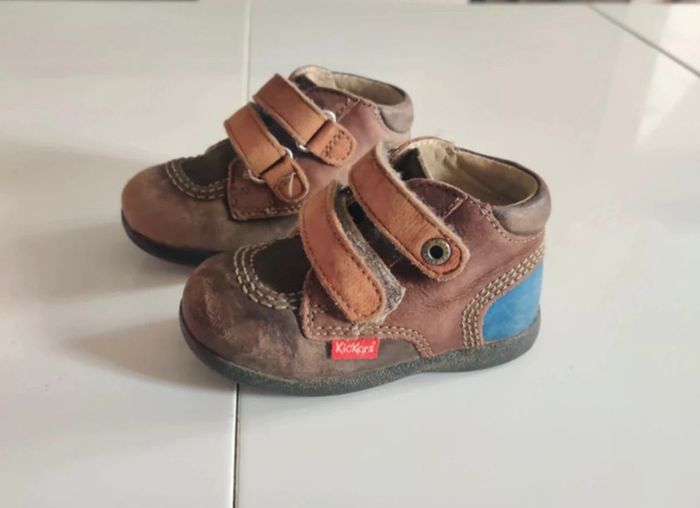 Bon état Modèle Babyscratch de Kickers Parfaites pour des 1ers pas ou du 4 pattes. Elles ont plus servis pour marcher en intérieur et faire de la poussette. Un peu râpées sur le bout des chaussures a cause du 4 pattes mais elles restent jolies.