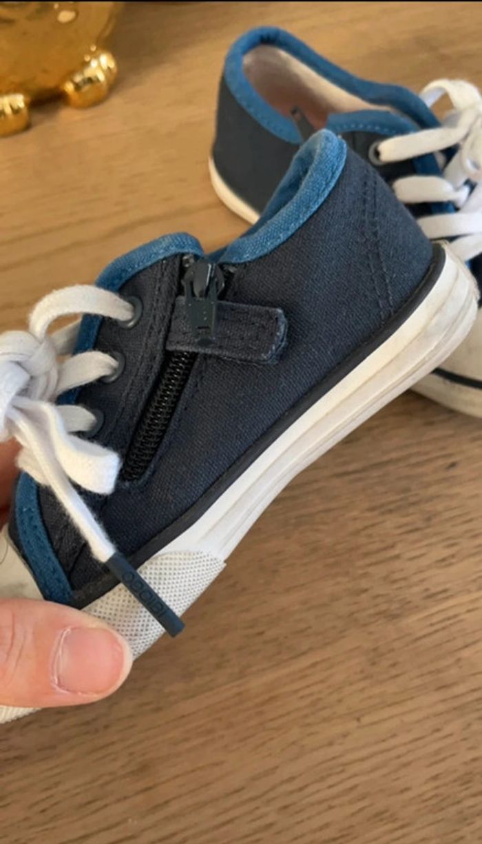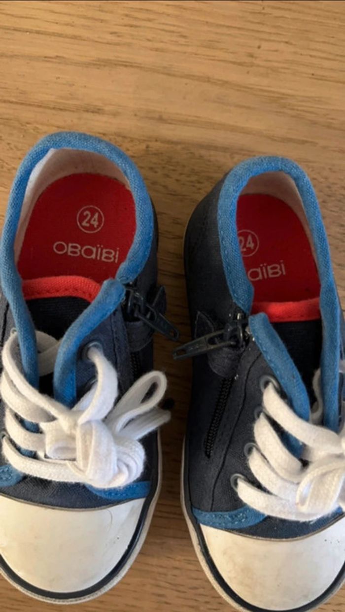 Tennis en toile de la marque Okaidi/Obaibi Très bon état , Portée ou deux fois. Excellent état Lacets + zip sur le côté Les lacets sont plus décoratifs Enfilage facile