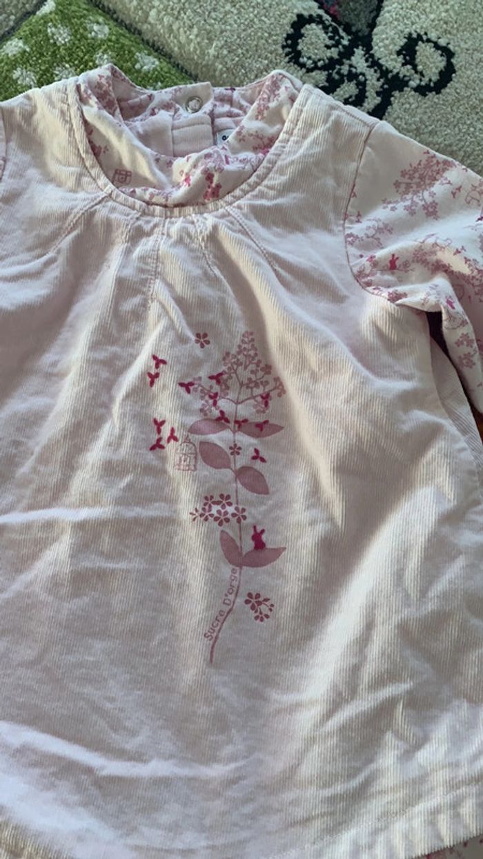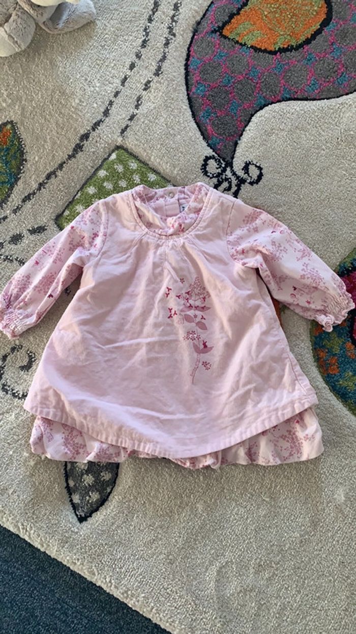 robe doublée velours côtelé imprimé fleurie et petits oiseaux excellent état 9 mois / 71 cm