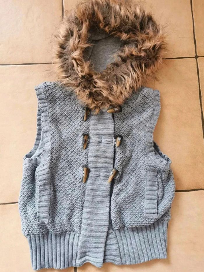 Gilet en maille à capuche sans manche gris Taille 8 ans Bilook #mabiquette10fille8ans
