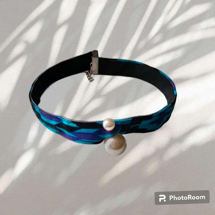 Collier ras de cou en tissu Wax et perle nacrée Taille variable Neuf #mabiquette10accessoires