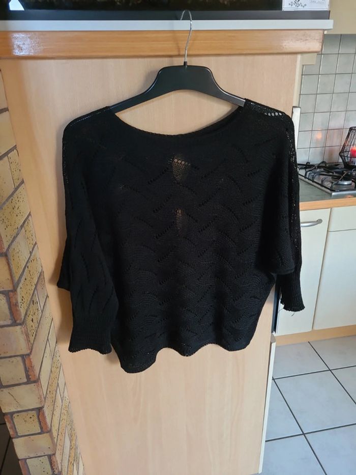 Taille 42/44 Noir Très peu porté 68 cm aisselle à aisselle 55 cm de haut en bas Manches 3/4