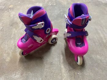 ROLLERS : Occasion, Objet ayant été utilisé et présentant des marques d'usure mais fonctionnant correctement. Molette pour élargir la roue arrière pour plus de sécurité si besoin.