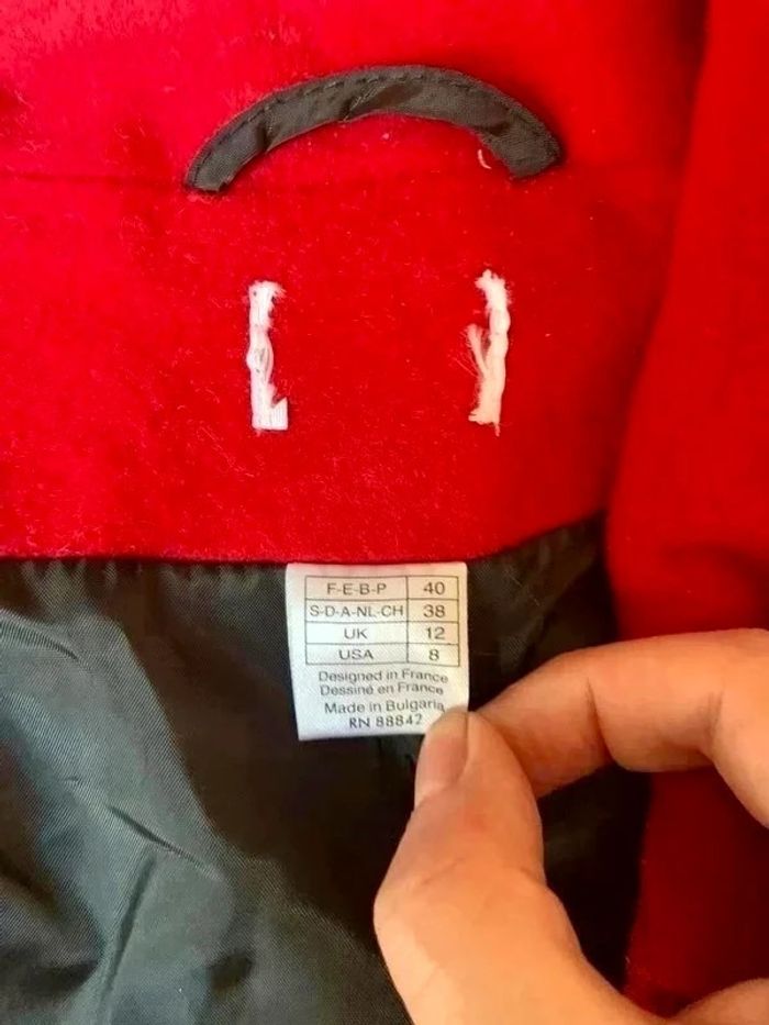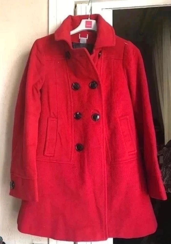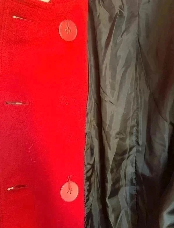 Manteau rouge La redoute (dégriffé) Huit gros boutons noirs sur l’exterieur, deux à l’intérieur (dont un sera à recoudre) 75% laine donc très chaud Taille 40 Deux poches latérales , fente d’aisance à l’arrière Entièrement doublé #lilli1407_manteau
