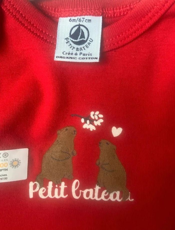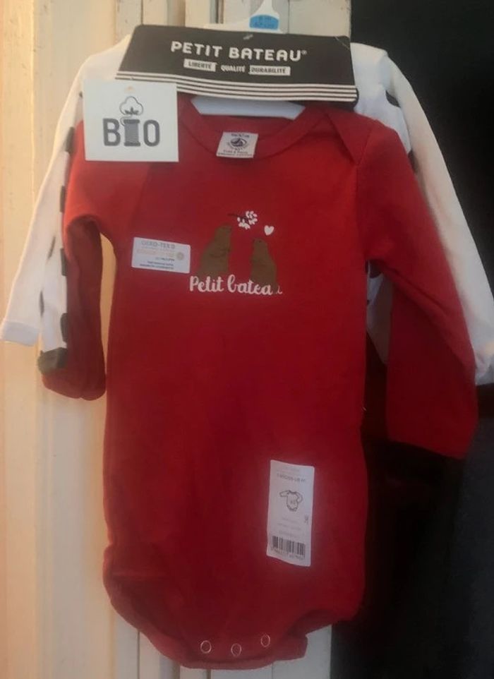 Lot de 3 bodies rouge et blanc Petit bateau 6 mois (67 cm) 100% coton #lilli1407_bebe