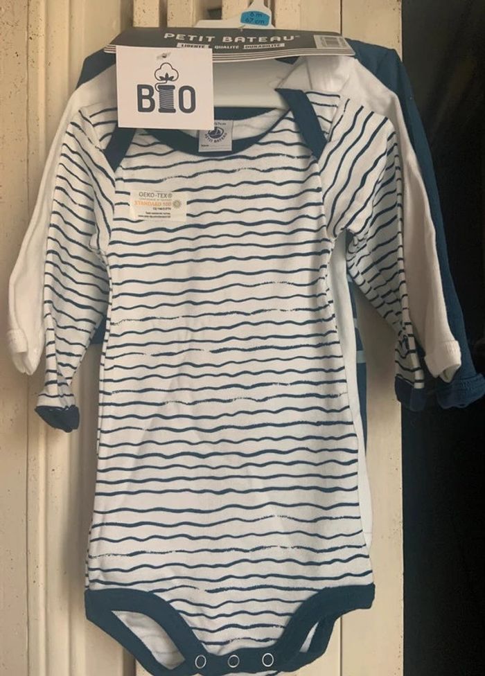 Lot de 3 bodies Petit bateau 6 mois (67 cm) Bleu et blanc 100% coton #lilli1407_bebe