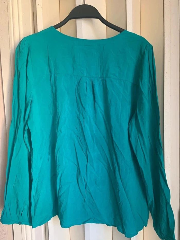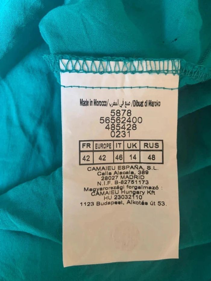 Tee-shirts manches longues vert Camaïeu Découpe en V a l’encolure Manches fermées par un petit bouton Taille 42 100% viscose Peu porté, très bon état #lilli1407_hauts