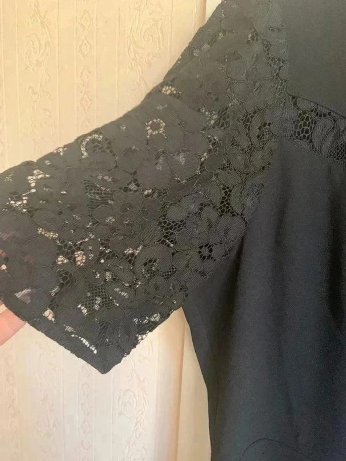 Robe noire Etam Découpe en dentelle sur le devant Petites manches en dentelle Légèrement évasée Fermée par un zip au dos Taille 44 Neuve avec étiquettes #lilli1407_robe