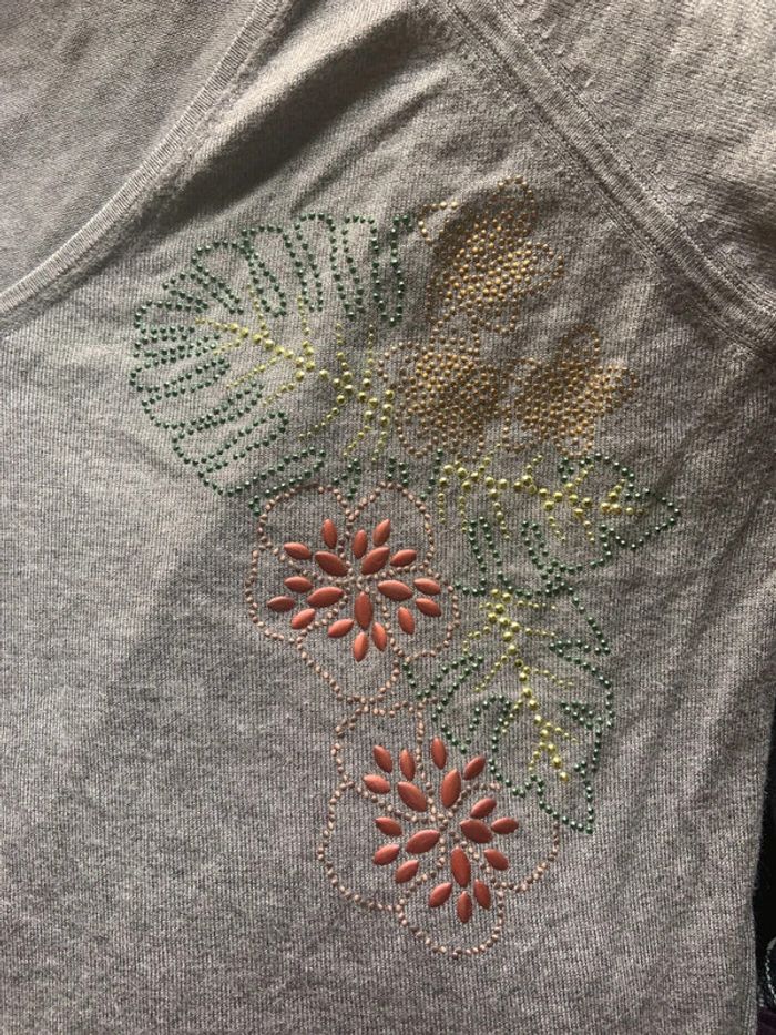 Pull fin manches longues gris Kookai Encolure V, broderie sur le côté gauche Pas d’étiquette de taille (je pense que c’était un 40) ou de composition Très bon etat #lilli1407_hauts