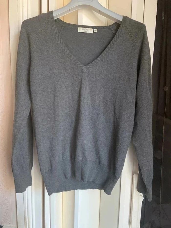 Pull fin manches longues gris foncé C&A encolure en V taille M 70% coton, 30% nylon Parfait pour la mi-saison Porte mais reste en bon état #lilli1407_pull