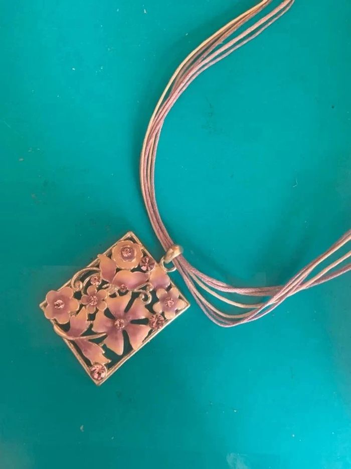 Pendentif rectangulaire mauve monté sur fil #lilli1407_bijoux