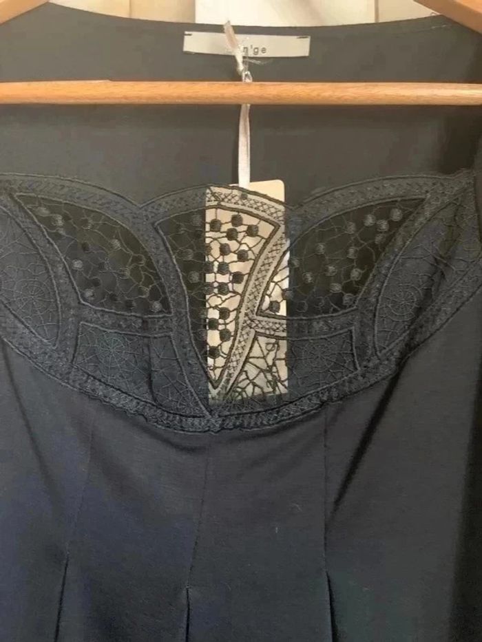Robe noire An’ge style babydoll Empiècement dentelle Petites manches Taille 2 Composition : 70% polyester, 28% viscose, 2% elasthane Neuve avec étiquette #lilli1407_robe