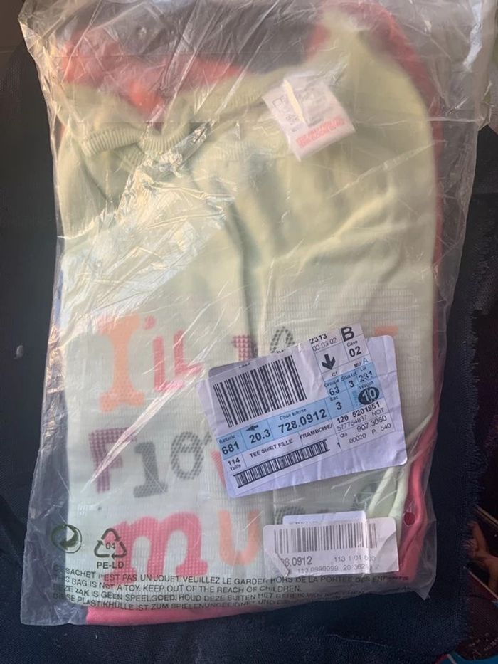 Lot de deux tee-shirts fille La redoute L’un vert d’eau à motif, L’autre uni rose Taille : 114 (6 ans) Neuf sous blister