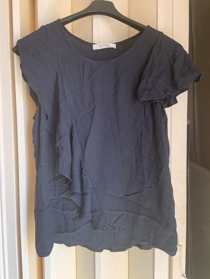 Tee-shirt volante bleu marine Promod Taille 42 Très bon etat #lilli1407_teeshirts