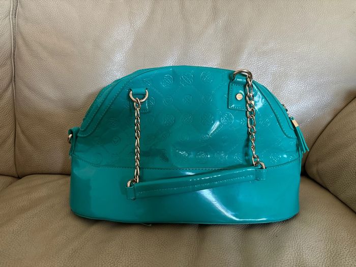 Sac à main Morgane, vert, canard très peu servi, mais un petit trou dans la doublure à recoudre facilement