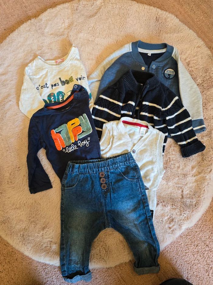 2 t-shirt: Inextenso en excellent état Le dpam satisfaisant 1 jean: Tape a l'œil en excellent état 3 gilet: Sergent majeur etat moyen car bien porté L'autre qlq bouloches Un sans manches obaibi en très bon état