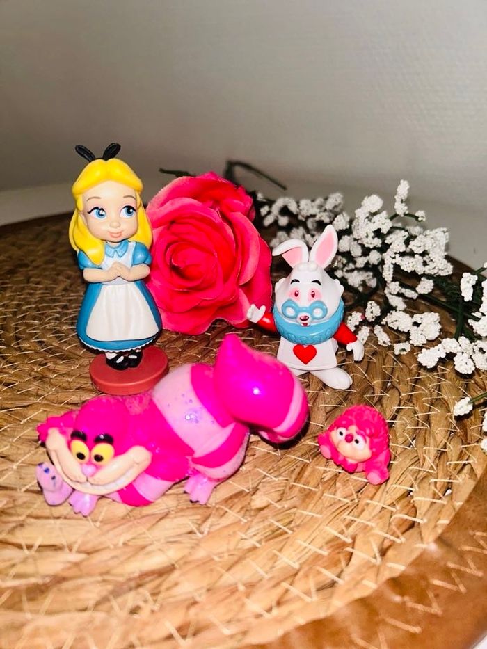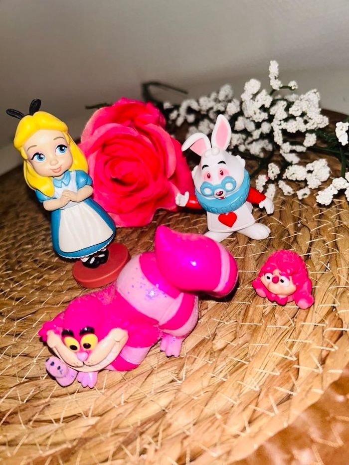 Lot figurine animator Alice lapin blanc hérisson et cheshire