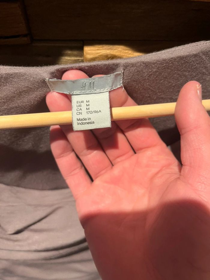 Joli haut avec décolleté. Les côtés sont élastiques pour bien souligner la taille Très bon état De la marque H&M, taille M Couleur taupe