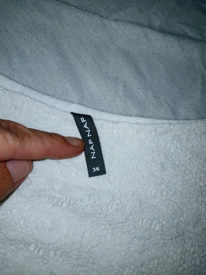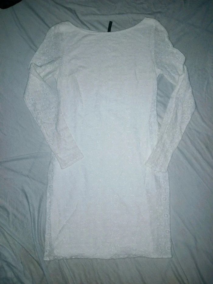 Jolie robe blanche toute en dentelle Bras en transparence Marque naf naf Taille 36 Parfait pour une occasion comme un mariage, baptême etc...