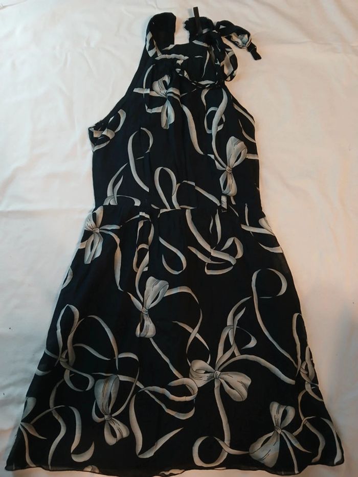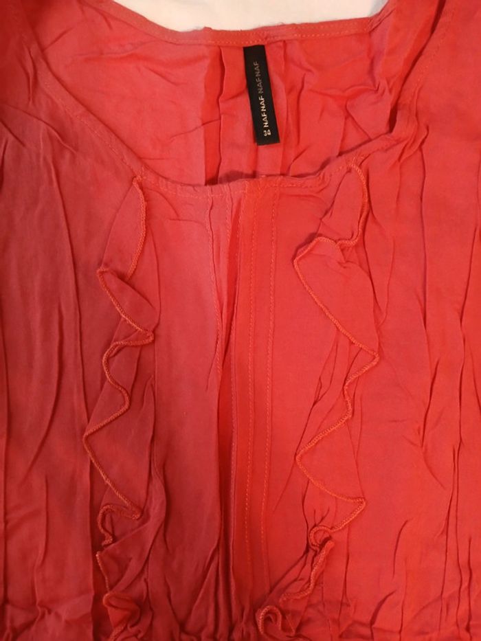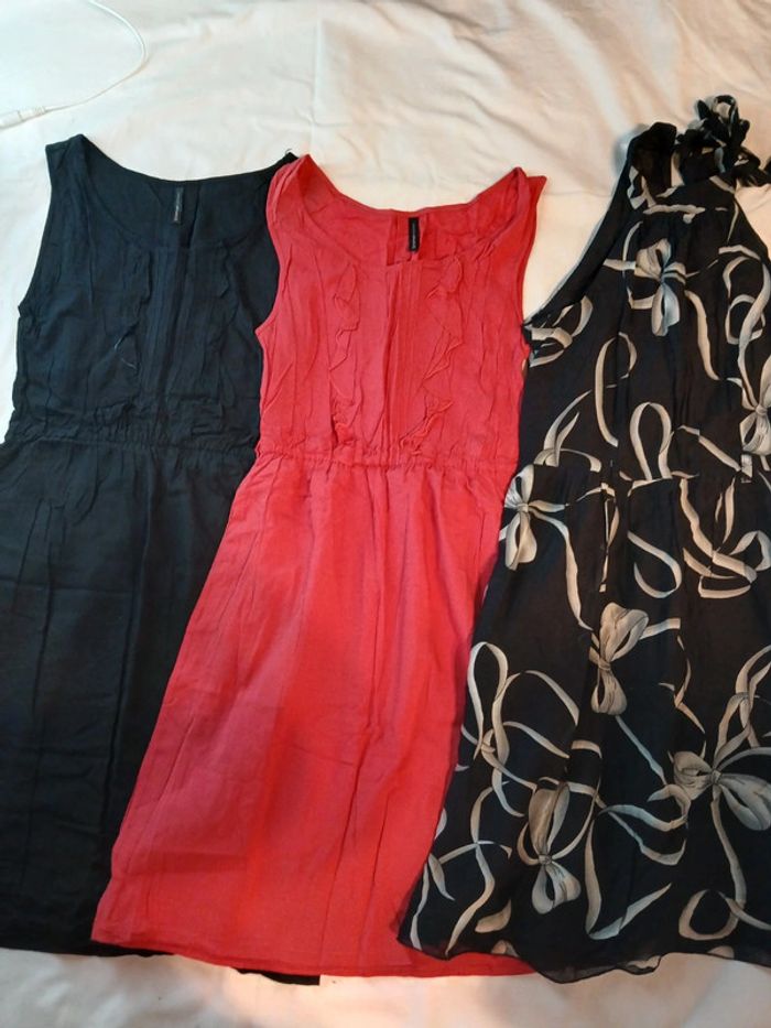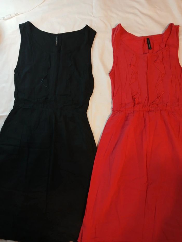 En lot 15 € ou à l'unité 5€ Robe naf naf comme neuve 1 noir et rose orangé avec volants sur le devant 1 noir à motif col serré et noeud.