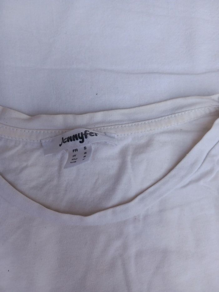 En lot ou à l'unité tee shirts taille S 1 bleu violet kiabi 2€ 1 blanc crop top avec bande élastique 1€ 1 blanc sans manches avec col et écriture jaune 2€