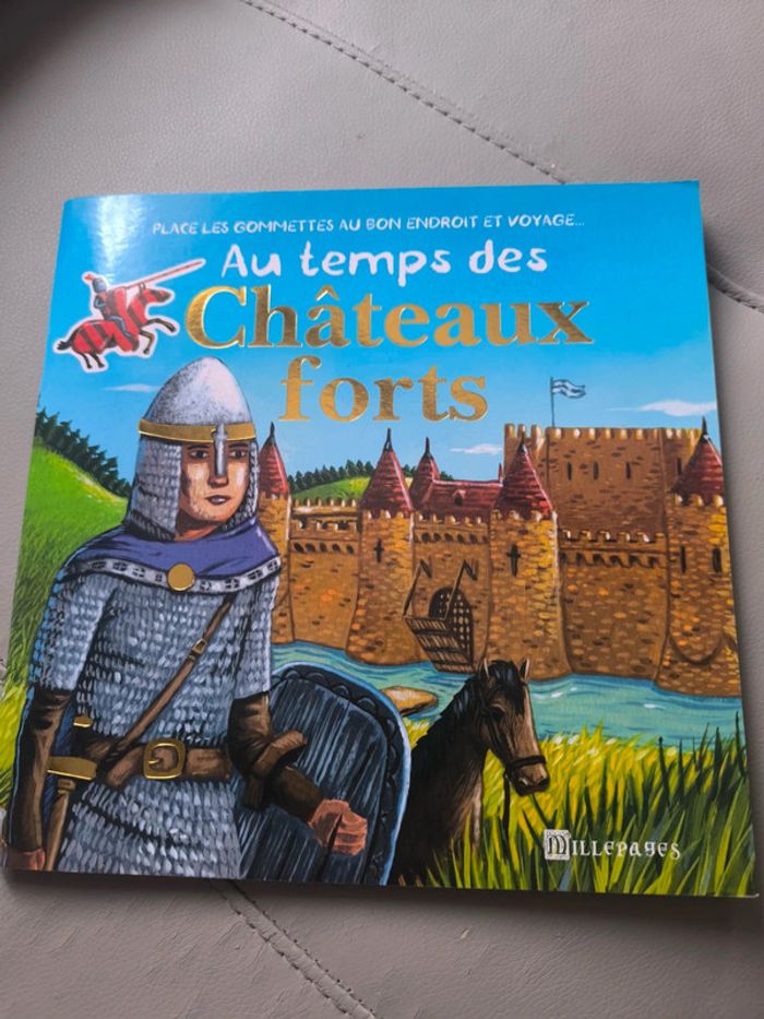 Livre Au temps des Châteaux forts Livre avec gommettes à placer au bon endroit Voyage dans le temps Neuf jamais servi Édition millepages