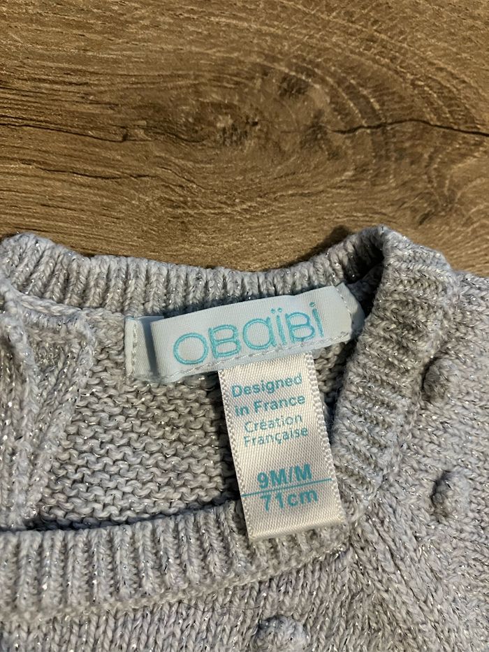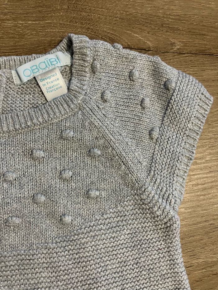 Robe en maille à manches courtes avec fil argenté Obaïbi taille 9 mois Très bon état