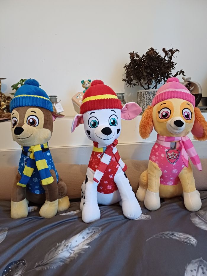 Peluches Patte patrouille, Jace , Marcus en tres bon état . Stella est un peu décousue sur la Patte arrière mais à part ça l'état et comme les deux autres.