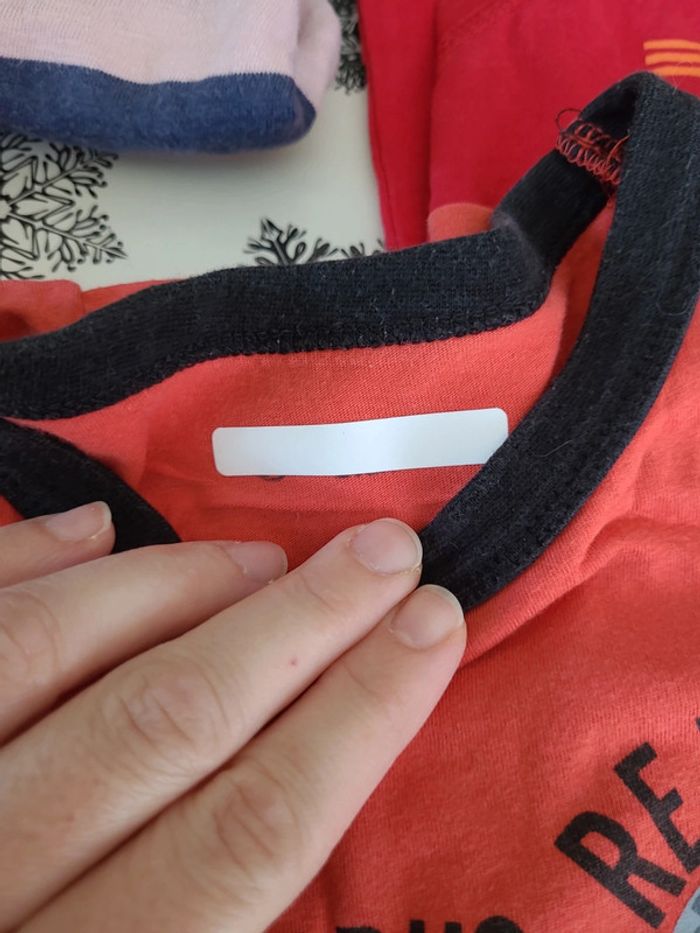 En très bon état, certains tee-shirt ont été beaucoup mis mais il n'y a aucun trou. Lot de 5 tee-shirt manches courtes et de 2 débardeurs. Selon la taille du garçon, cela peut convenir jusqu'à 4 ans voire 4 ans et demi. j'ai mis des étiquettes blanches thermocollantes pour cacher le nom de mon fils et que vous puissiez noter celui du vôtre. Je suis en train de faire du vide, n'hésitez pas à faire des lots #lilouth30vetementsgarçontaille3ans #lilouth30vetementsgarçontaille4ans