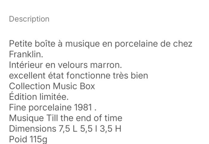 Boîte à musique en porcelaine Franklin - photo numéro 4