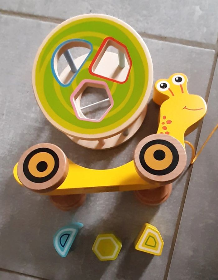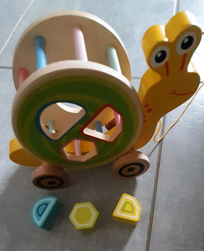 Petit escargot en bois avec 3 formes